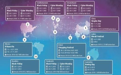 München – Black Friday, Singles Day, El Buen Fin, Boxing Day – die Namen sind unterschiedlich, der Grundgedanke ist derselbe: der Handel soll von besonderen Verkaufsaktionen profitieren.
