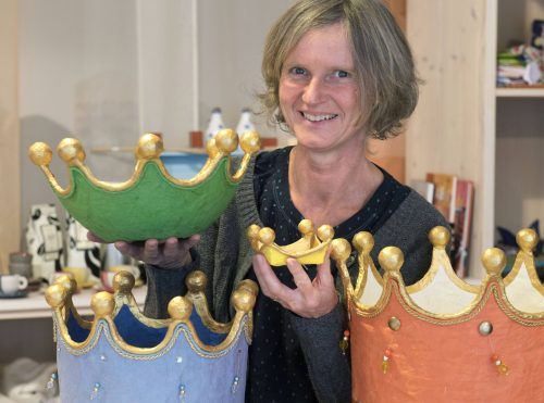 „Die Kronen sind der Renner“, sagt Silke Nonnenmacher vom „Herzogsägmühler Laden“ in Weilheim. Und obwohl die Schmuckstücke nur aus Pappmaché gefertigt werden, haben sie etwas wahrlich Königliches an sich. Zudem sind sie richtige Multitalente: Sie eignen sich als Körbchen, als Schlüsselschälchen, al