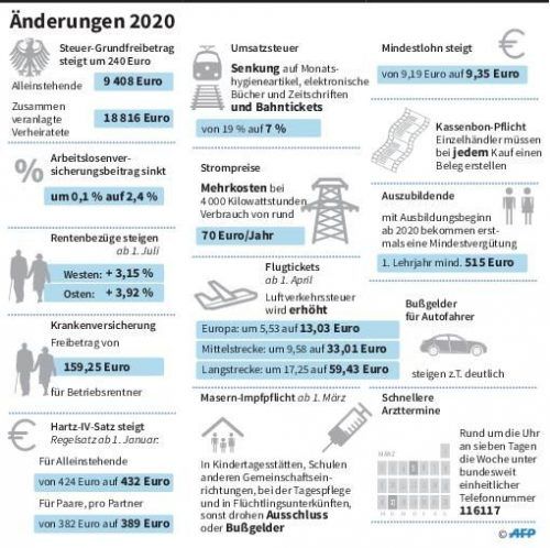 Mehr Geld für Rentner und Azubis, günstigere Bahnfahrten und eine Kassenbonpflicht: Die Bundesregierung in Berlin hat für das kommende Jahr viele Änderungen auf den Weg gebracht. Was sich für die Menschen in Deutschland im Jahr 2020 ändert – ein Überblick von A bis Z.
