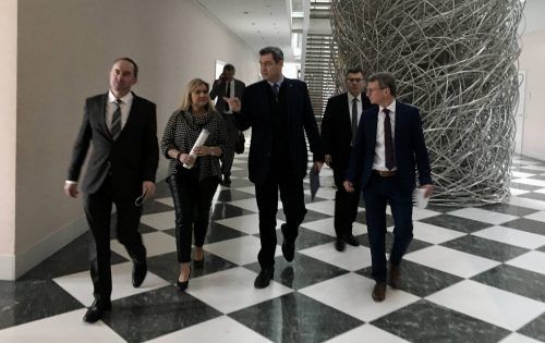 München – Schwarze und weiße Marmorplatten pflastern den langen Südflügel der Staatskanzlei. Markus Söder schreitet über ein schier endloses Muster von Quadraten seiner Pressekonferenz entgegen. Rechter Fuß: weißer Stein. Linker Fuß: schwarzer Stein. Immer wieder. Dieser Gang zwischen Hell und Dunke