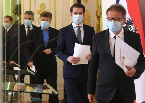 Wien – Ihren Mundschutz nahmen Österreichs Kanzler Sebastian Kurz (ÖVP) und drei seiner Minister nur für die Pressekonferenz ab. Hinter Schutzwänden aus Plexiglas verkündeten sie am Montag den Österreichern eine mehrteilige Botschaft geprägt von Zuversicht,