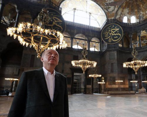Istanbul – Alle internationalen Proteste waren vergeblich. Der blau-grüne Teppich ist verlegt. Er soll 14 000 Quadratmeter groß sein, dem Vernehmen nach hat ihn der türkische Staatspräsident Recep Tayyip Erdogan selbst bezahlt. Auf ihm sollen Muslime ab heute fünfmal am Tag zu