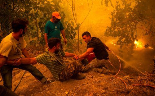 Aghia Anna – Jannis Amarantidis, 46, beginnt an jenem ersten Donnerstag im August das in Sicherheit zu bringen, was in seinem Fahrradverleih am wertvollsten ist. Die teuersten Räder kommen zuerst auf den Anhänger des vollbärtigen Griechen. 16 Fahrräder passen darauf. Ab zum Stra