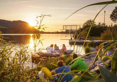 21 Uhr: Im Süden ragt die Brecherspitz schroff in den Himmel. Richtung Oberland im Norden sind die Hügel sanfter. Im Westen schiebt sich die Sonne jetzt langsam über die Bergkette, bis sie die Gipfel als lodernder Feuerball berührt. Den Schliersee im Landkreis Miesbach taucht der Sonnenuntergang ab