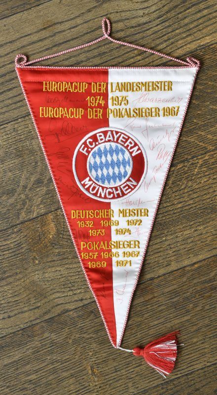 Bald will Markus Wössner für den guten Zweck – die Schule in Nepal – eine Rarität versteigern: einen Wimpel aus dem Jahr 1975, den die Originalunterschriften der damaligen Spieler des FC Bayern München zieren. Trainer Dettmar Cramer hat sich auf dem rot-weißen Wimpel verewigt, ebenso