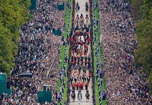 London – Staatsoberhäupter aus aller Welt waren gekommen, Königinnen und Könige, Sultane und sogar der japanische Kaiser Naruhito, der sonst nie an Beisetzungen teilnimmt. Hunderttausende nahmen am Straßenrand Abschied und warfen Blumen, als der Leichenwagen die Königin zum letzten Mal aus der briti