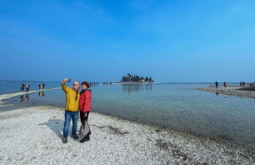 München – Normalerweise ist die kleine Insel San Biagio im Gardasee nur per Boot erreichbar. Aber der Gardasee hat Durst. Die anhaltende Trockenheit hat den Wasserpegel auf den niedrigsten Stand seit 2002 sinken lassen – und einen Pfad freigelegt, über den jetzt Touristensch