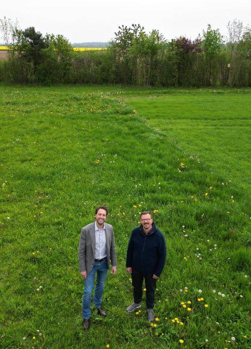 Feldkirchen/Haar – Zwei Männer stehen zwischen einem stillgelegten Ausweichparkplatz, einer Brache und einer grünen Wiese. Im Hintergrund eine unscheinbare Hecke aus grünen Sträuchern. Sie markiert die Grenze zwischen den Revieren der beiden Bürgermeister. Beg