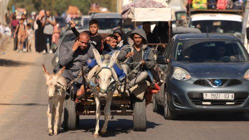 Gaza – Mit seiner Tochter auf dem Arm lässt Mohammed Talatene im Gazastreifen sein Zuhause zurück. Es sei kurz nach Mitternacht gewesen, als sie vom israelischen Militär aufgefordert wurden, den Norden des Gazastreifens zu verlassen, sagt der Fotograf der Nac