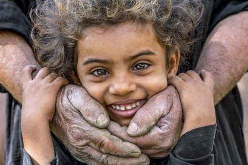 „My Granddaughter“ (meine Enkelin) von Karar Ali Sabih Alftlawi zeigt die Irakerin Hamida und die von der Arbeit gezeichneten Hände ihres Großvaters. Hamida geht jeden Tag mit aufs Feld, um zu helfen – weil sie ihren Opa liebt.