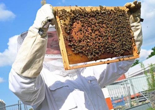 Direkt gegenüber dem Heizkraftwerk liegen die Bienenstöcke auf dem Areal der Münchner Großmarkthalle.
