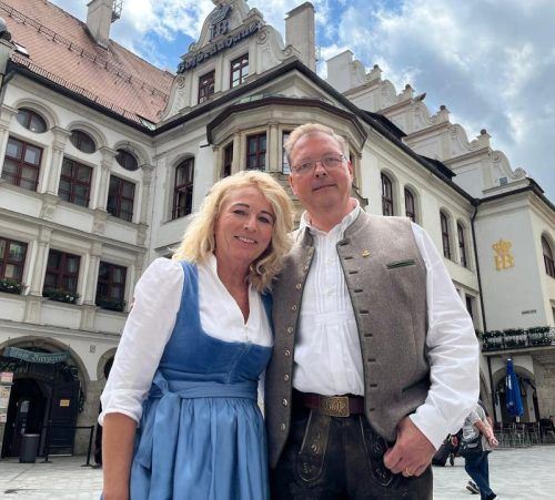 Das berühmteste Wirtshaus der Welt: Die Wirte Barbara und Wolfgang Sperger vor dem Hofbräuhaus. © Tschirpke