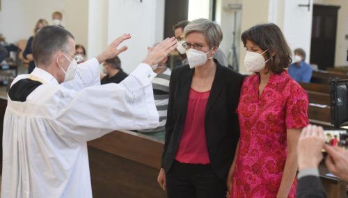 Ein lesbisches Paar hat Wolfgang Rothe bereits am 9. Mai 2021 in München gesegnet. © Hörhager/dpa