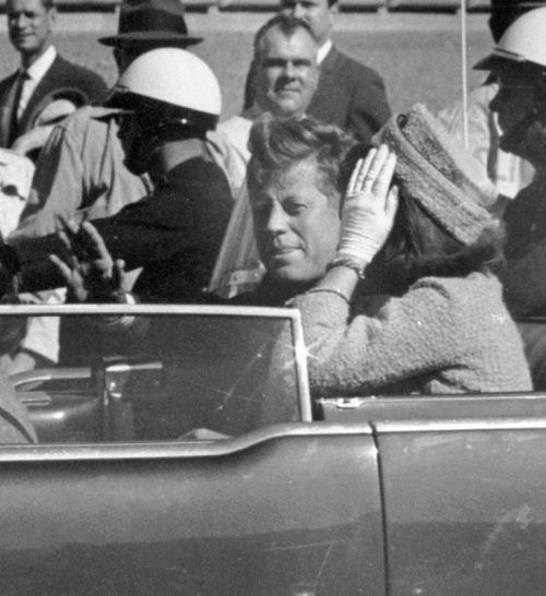 John F. Kennedy winkt aus dem Auto, etwa eine Minute später fallen die Schüsse. © dpa