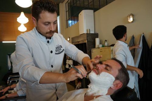 Nicht jedem steht Schnauzer, sagt Barbier Daniel Pieropan, hier mit Kunde Markus Drexler. © Foto: Max Wochinger