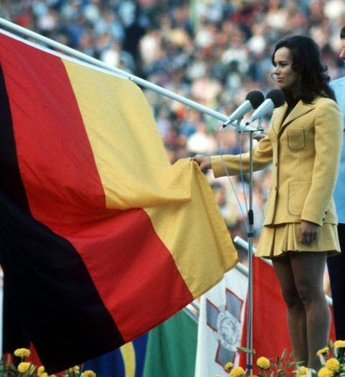 Leichtathletin Heidi Schüller spricht 1972 im Münchner Stadion den olympischen Eid.