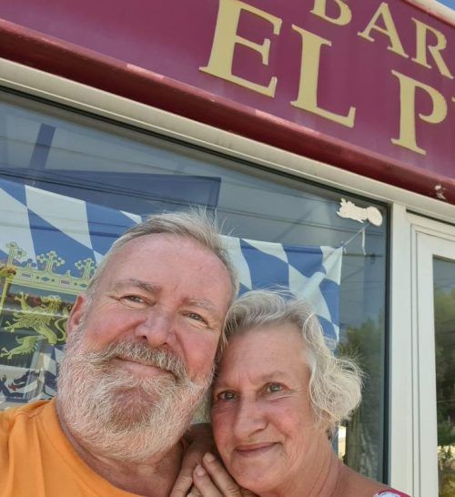Barbara und Peter Schreck vor ihrer Kneipe in Spanien. © privat