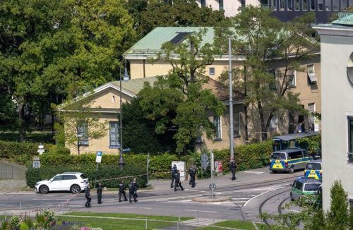 Der Blick auf den Polizeieinsatz am Karolinenplatz. Einige Münchner verfolgten alles vom Fenster aus. © dpa