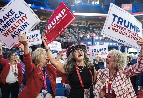„Niedrigere Steuern und keine Inflation“, steht auf einem der Plakate von Tr