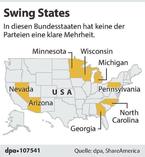 Es wird ein enges Rennen: Die US-Wahl zwischen Kamala Harris und Donald Trump entscheidet sich in wenigen Swing States. Ein Überblick, auf welche Regionen man bis zum 5. November besonders achten sollte.