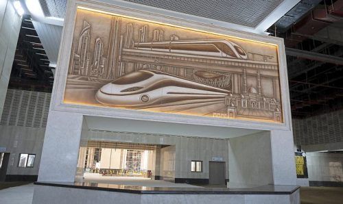 Die imposante Eingangshalle des neuen Siemens-Bahnhofs in der neuen Verwaltungshauptstadt Ägyptens. © Sven Hoppe/dpa