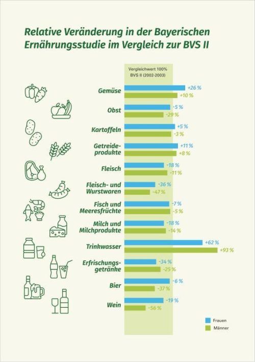 Die Grafik zeigt, wie sich die Ernährung in Bayern im Vergleich zur KErn-Studie vor 20 Jahren verändert hat. © Quelle: KErn
