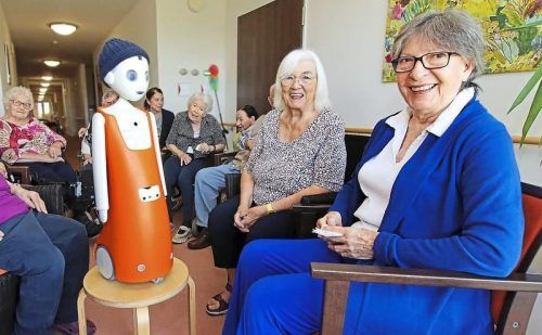 Der Hahn im Korb: Roboter „Johanni“ kommt bei den Senioren gut an. Er ist immer nett und witzig. Seit einem Jahr ist er im Einsatz. © Fotos (2): Dagmar Rutt