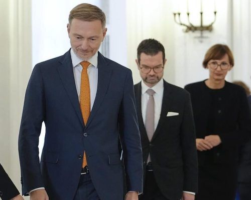 Plötzlich wieder Opposition: Die FDP-Politiker (v.l.) Christian Lindner, Marco Buschmann (FDP) und Bettina Stark-Watzinger (FDP) erhalten im Schloss Bellevue ihre Entlassungsurkunden. © Kay Nietfeld/dpa