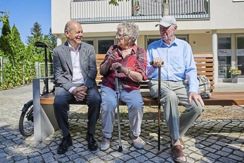 Als Retter der Renten durch den Wahlkampf: Olaf Scholz hofft auf viele Stimmen von älteren Wählern – fast 40 Prozent der Wahlberechtigten in Deutschland sind älter als 60 Jahre. Das Bild zeigt den Kanzler im August in Kleinmachnow in Brandenburg. © Jörg Carstensen/Picture Alliance