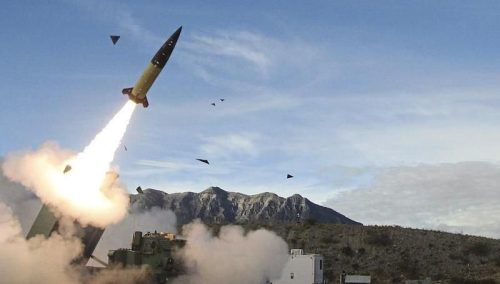 Aufnahme des Starts einer ATACMS-Rakete vom Hersteller Lockheed Martin, hier verschossen aus einem Raketenartilleriesystem M270.