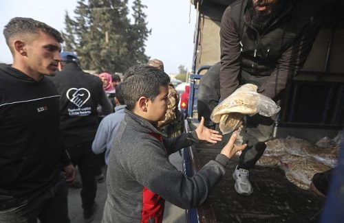 Die Not ist groß: Hier verteilen Rebellenkämpfer in Hama Brot an die Einwohner. © BAKR ALKASEM/Getty Images