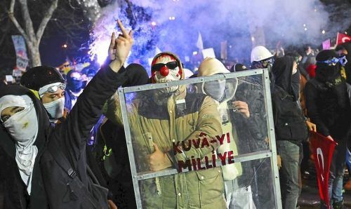 Sonntagnacht in Istanbul: Teils vermummte Demonstranten forderten die Freilassung von Ekrem Imamoglu und lieferten sich Straßenschlachten mit der Polizei. © Yasin Akgul/AFP