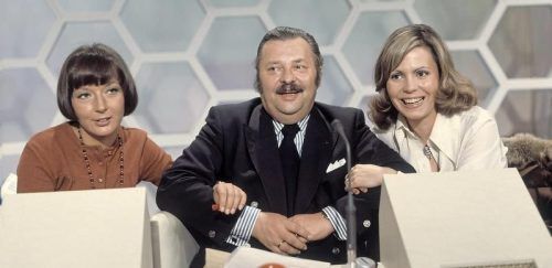 Die „Dalli Dalli“-Jury im Jahr 1970 am Pult: Brigitte Xander (von links), Ekkehard Fritsch und Mady Riehl. © Picture Alliance