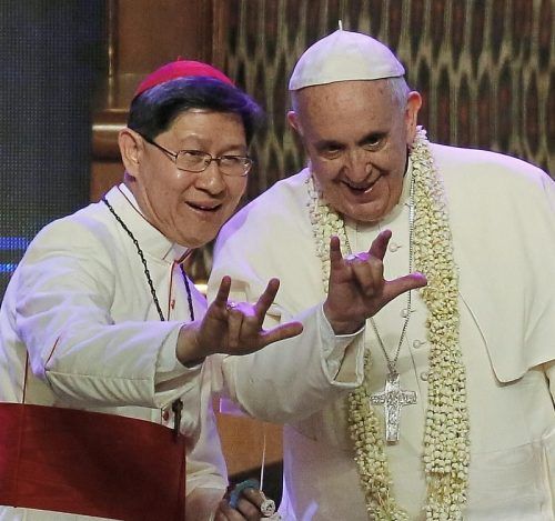 „Ich liebe dich“: Kardinal Tagle und Franziskus zeigen bei einem Besuch des Papstes auf den Philippinen das Handzeichen für die Botschaft „I love you“. Tagle wäre ein Nachfolger