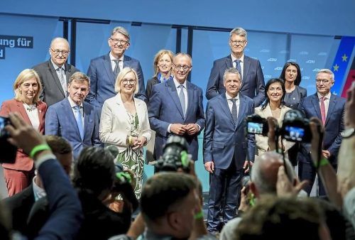 Merz‘ Ministerriege: Der Bald-Kanzler hat gestern seine Kabinettsliste vorgestellt. © Kay Nietfeld/dpa