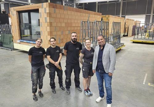 Mauern, Technik, Innenausbau: Wie im Autobau durchlaufen die Module eine Station nach der anderen.