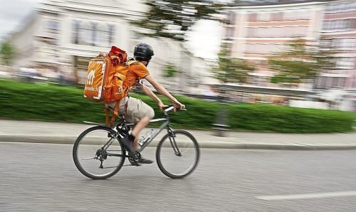 Ein Lieferando-Fahrer radelt durch München. © Hartmann