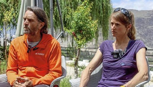 Thomas Huber und Marina Krauss gestern bei der Pressekonferenz in Skardu in Pakistan. © Manzoor Balti/AFP
