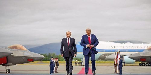 Keine Antworten: Putin reagiert mit Grimassen und Gesten auf die laut durcheinander fragenden Journalisten – sollte wohl heißen: Ich ve