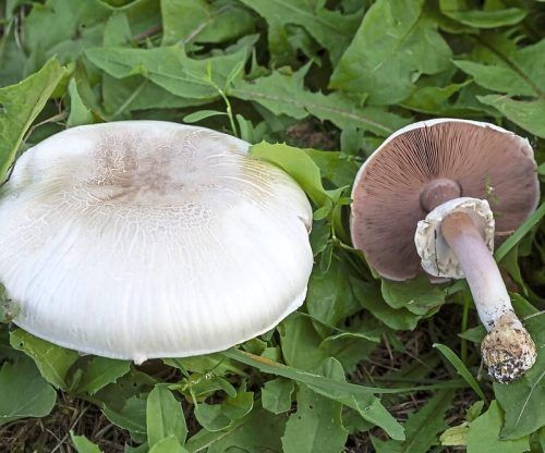 Bei Wiesen-Champignons ist der Hut ist halbkugelig, später ausgebreitet. Die Lamellen wechseln von Rosa zu Braun, das Fleisch bleibt beim Anschneiden weiß. Der Geruch ist angenehm pilzartig. Der giftige Karbol-Champig