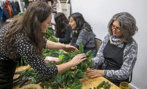 Ab in die Tüte: Unsere Reporterin Lea Schütz (li.) ist stolz auf ihren ersten selbst gebastelten Adventskranz.