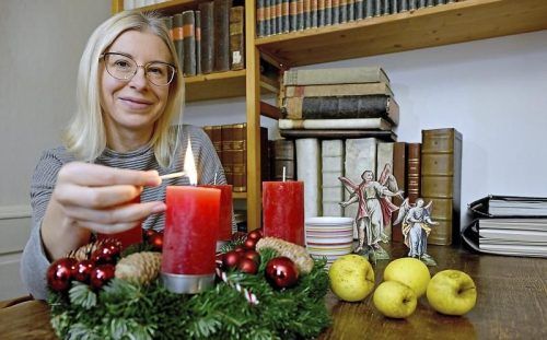 Die erste Kerze wird entzündet: Fürs Foto hat Daniela Sandner schon vor dem 1. Advent Hand angelegt. © Astrid Schmidhuber