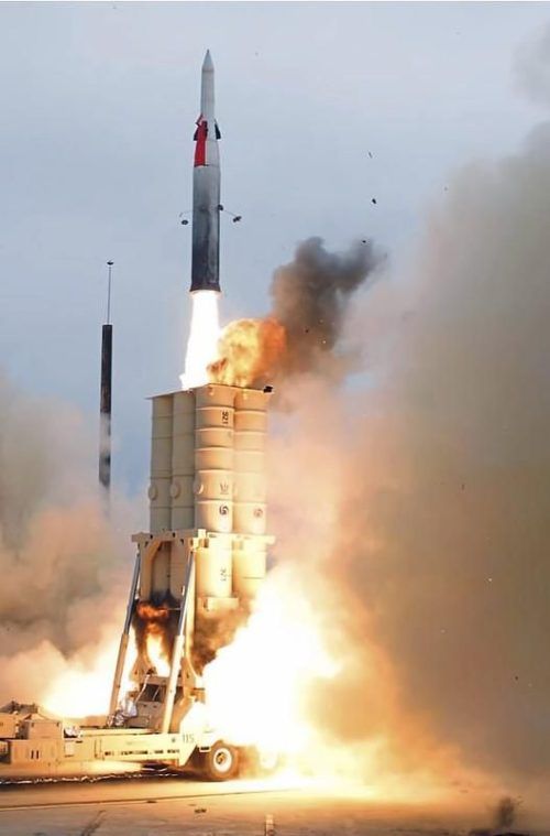Eine Arrow-Abwehrrakete hebt ab: Deutschland hat drei der Systeme von Israel gekauft. © IMAGO/Chameleons Eye/IAI