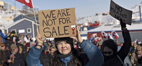 „Wir stehen nicht zum Verkauf!“: Anti-Trump-Protest in Nuuk, Grönland. © dpa