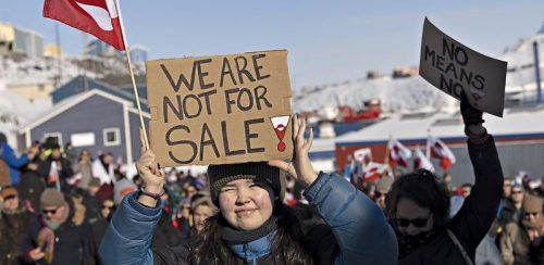 „Wir stehen nicht zum Verkauf!“: Anti-Trump-Protest in Nuuk, Grönland. © dpa