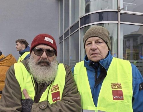 Peter Schmid und Udo Kunte (re.) waren im Zug der Verdi-Demo. Das Erlebte zu verarbeiten, ist ein langer Prozess. © Winter