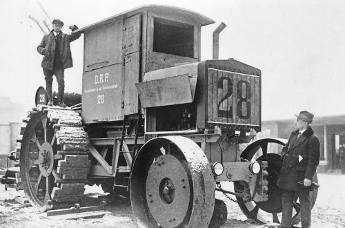 Grüne Woche 1930: Eine riesige Erdbearbeitungsmaschine wird in Berlin präsentiert. © dpa