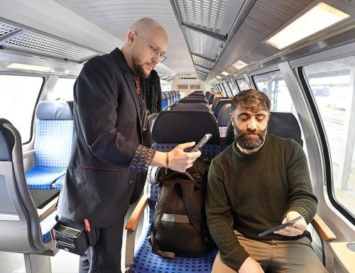 Mehr Respekt, das wär‘s – Zugbegleiter Benjamin Teichgräber kontrolliert Fahrgast Yildrim Osman. © Marcus Schlaf