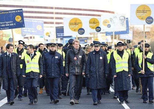 Die Lufthansa-Piloten, hier beim Streiken im Jahr 2016, sind in der Gewerkschaft Cockpit organisiert. © Picture Alliance