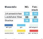 Das Bayerische Landesamt für Umwelt meldete gestern um 16 Uhr folgende Werte (Mikrogramm pro Kubikmeter; Feinstaub PM10: gleitender 24-Stunden-Mittelwert; Stickstoffdioxid: höchster 1-Stunden-Mittelwert im Zeitraum von 0 bis... zum Artikel